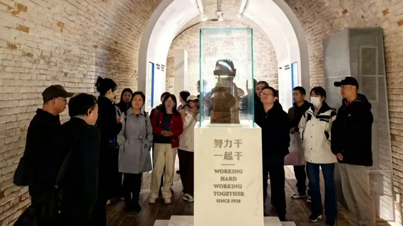 在长乐塬抗战工业遗址,党员们怀着崇敬的心情走进这片承载着民族工业抗战记忆的热土。大家依次参观了窑洞工厂、薄壳车间等历史建筑,深入了解抗战时期民族工业内迁的艰辛历程。在长达1.8公里的窑洞工厂内,党员们驻足凝视着当年留存的生产设备和工作场景,深刻感受到在民族存亡之际,实业界人士"工业救国"的坚定信念。透过斑驳的机器和泛黄的历史照片,大家仿佛看到了当年工人们在敌机轰炸下坚持生产的感人场景,体会到了"努力干、一起干"的工合精神所蕴含的深厚力量。这些珍贵的工业遗产,不仅见证了中国人民抗战的艰苦卓绝,更彰显了中华民族自强不息的伟大精神。