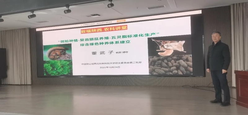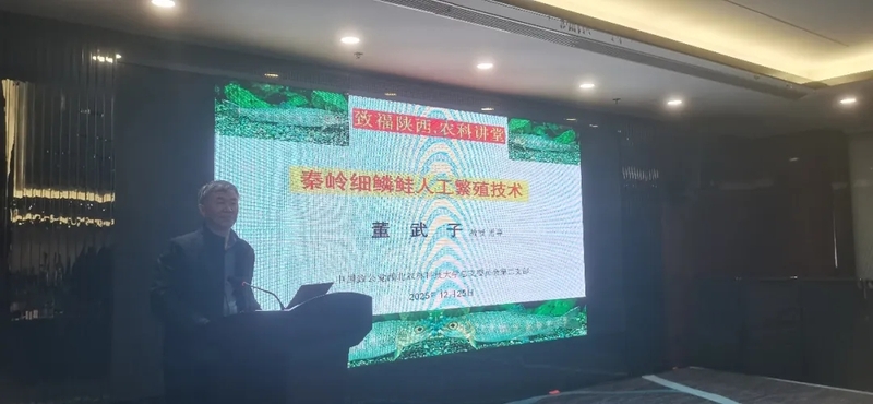 12月24日,董武子教授赴洛南县开展“致福陕西——农科讲堂”活动,为相关科局和养殖企业开展了复齿鼯鼠和林麝方面的技术讲座,全县10余个科局干部和主要养殖户等50多人参加会议。12月25日,在全省水产学会会议上,“致福陕西——农科讲堂”再次开讲。董武子教授向近80名与会的水产系统负责人与企业技术骨干,作了题为“秦岭细鳞鲑人工繁殖技术”的专题报告。据悉,2025年董武子教授和团队开展秦岭细鳞鲑人工繁殖,获得15cm规格鱼苗近40万尾,是近十年来首次获得如此大规模的秦岭细鳞鲑鱼苗,有力推动秦岭珍稀动物保护从被动救护向主动保育、科学利用转变。